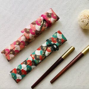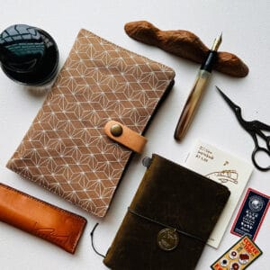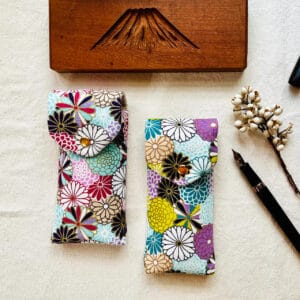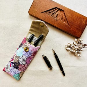 4-Slot Side-Flip Fountain Pen Case – Hand-Printed Floral Window Pattern This handcrafted pen case combines Italian vegetable-tanned leather with hand-silkscreened