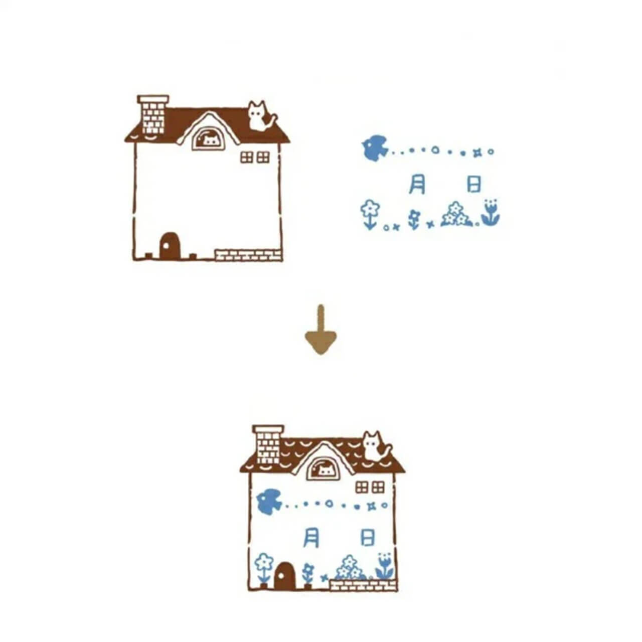 Kutsuwa Hancoco Hanko Slide Stamp – Bird/ Cat House