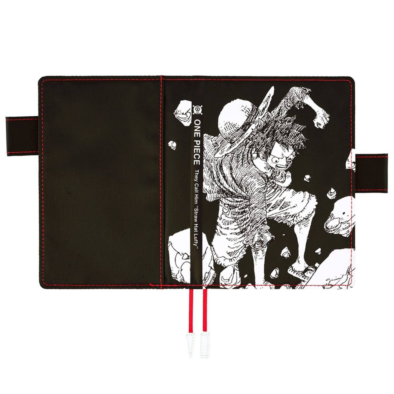 Inspired by the spine of the ONE PIECE magazine, this techo’s spine was created to look like a book, and includes the writing “They Call Him ‘Straw Hat Luffy,’” in black.