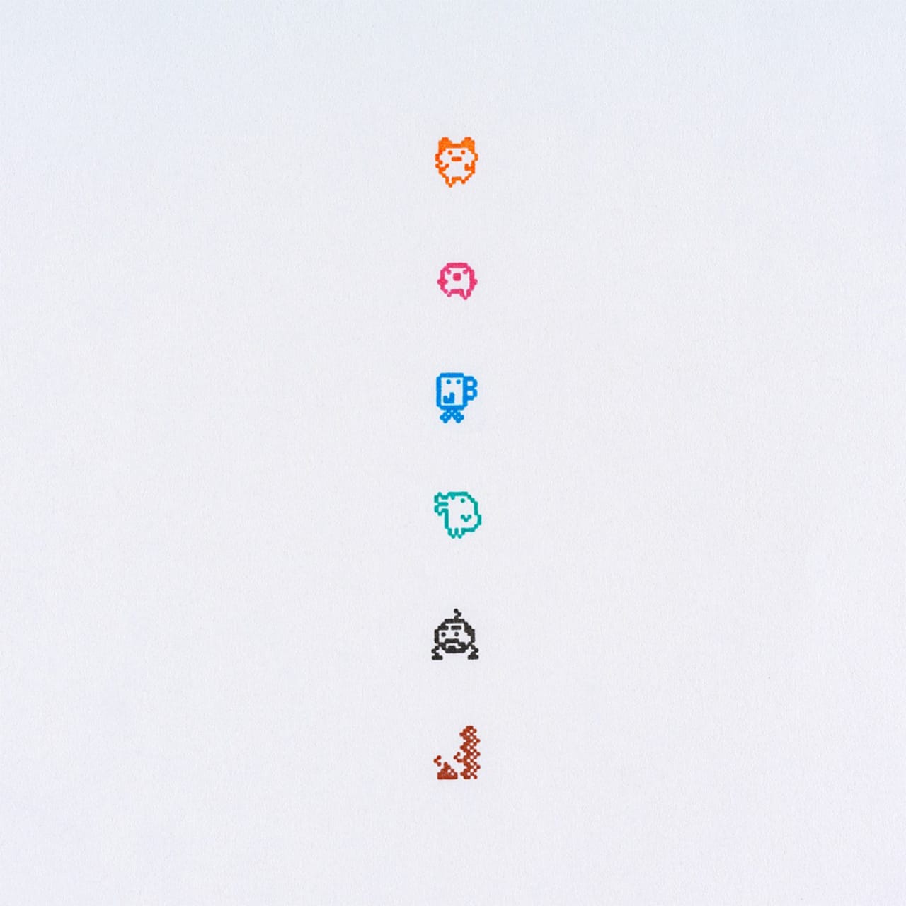 In the design for Tamagotchi, the characters are lined up in their cute pixel art styles. From the top, you have Mametchi in orange ink, Tamatchi in pink ink and Techotchi in blue ink―a Tamagotchi that was newly discovered on the Hobonichi Techo! Continuing on, there is Kuchipatchi in green ink, Oyajitchi in black ink and finally, a poop in brown ink that is being flushed away. It’s all up to your creativity where you want to use which design!