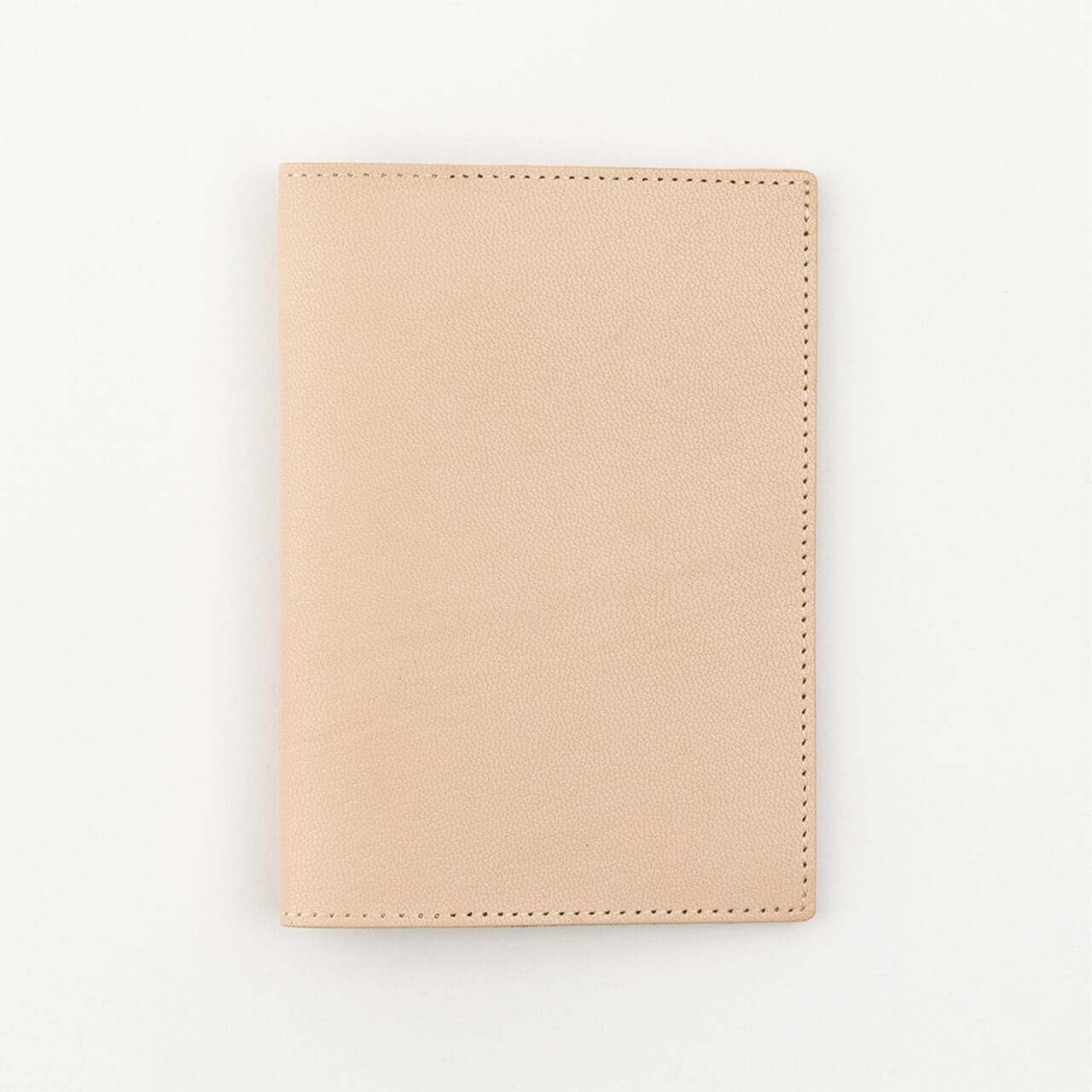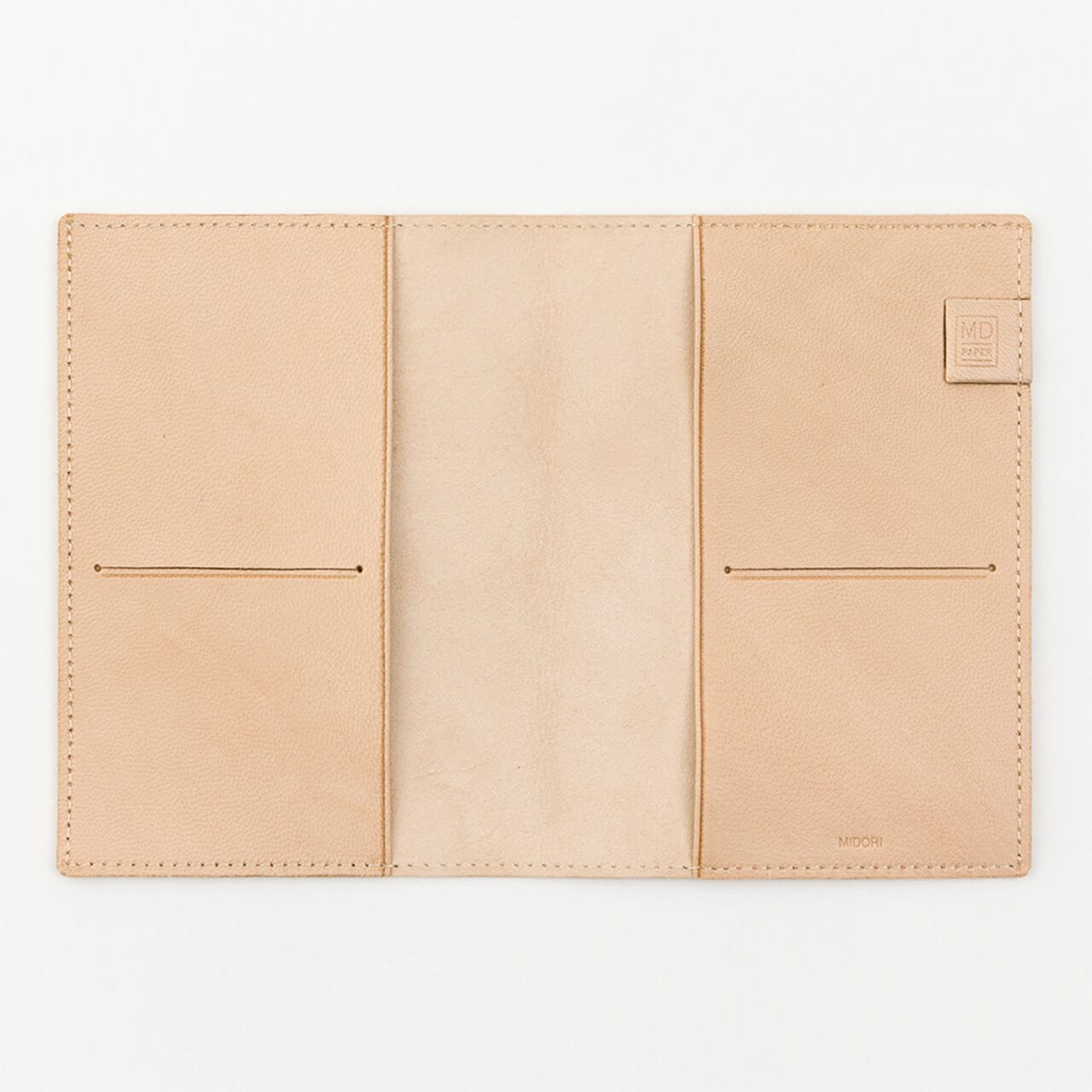 The leather is undyed for a simple look, and the unique character of each piece shines through on the inside of the cover.