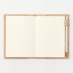 A pen holder is attached to the inside of the cover, right at the edge so that it doesn’t create a bump when you write.