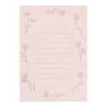 The flowers on the packaging and letter paper are the work of illustrator Megumi Sasaki. The soft, detailed floral illustrations give the pale-colored Japanese paper a gentle look.