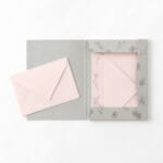 You can store your letter paper and envelopes in the included paper case. It has a chic design with a monochrome, delicate floral pattern.