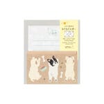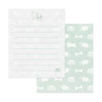 [Dog pattern] It depicts dogs chasing their favorite bones and dog food. The letter paper is a refreshing mint green that evokes the image of a grassland. The lines are designed to resemble dogs running around and grass swaying in the wind.
