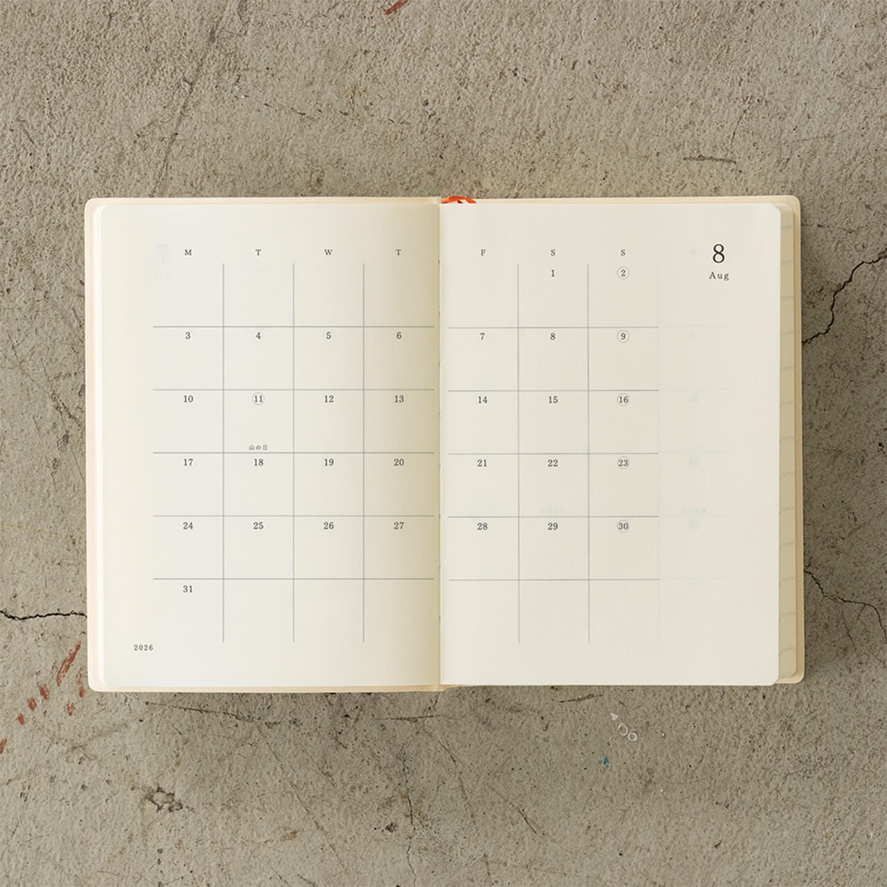 The MD paper used in the main text was developed as Midori’s original diary paper in the 1960s, and has continued to undergo quality improvements to this day. It’s designed for excellent writing comfort, with less bleeding and bleed-through. The thread-sewn binding allows it to open flat, making it easy to write on and durable.