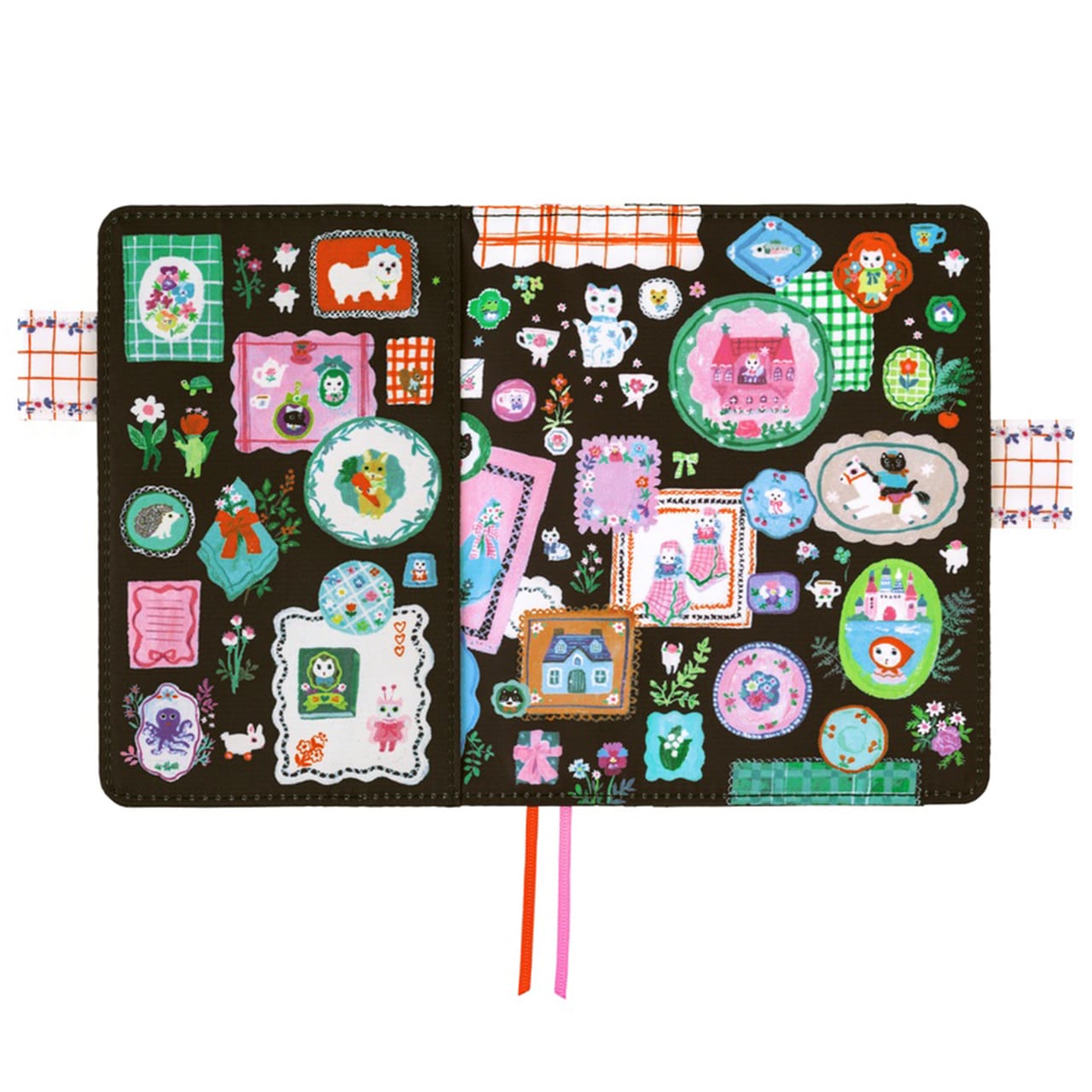 The world created by Kitagishi in acrylic gouache draws you in, quietly making you imagine the stories or settings behind each piece for a special kind of wonder. Both nostalgic and exciting, her illustrations perfectly capture the charm of a picture book. The theme for this techo cover is “table decorations,” and it is made out of a polyester material.