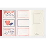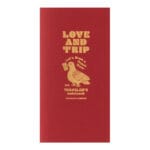 It features a red cover with a LOVE AND TRIP-themed design stamped in foil. In addition to MD PAPER Cream, the first and last pages are perforated massage cards, letterpress printed on the theme if LOVE AND TRIP. Give it to someone you meet on your travels with a message of love.