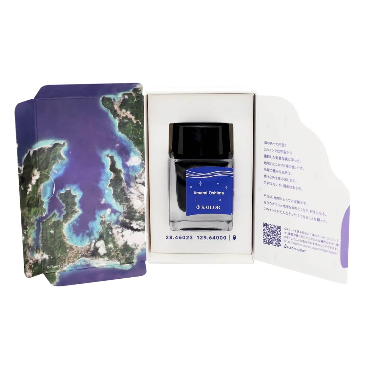 This original ink color is derived from coordinates: 28.46023, 129.64000, recreating the ocean of Amami Oshima.