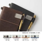 This is a clip type holder to clip your pen onto the TRAVELER’S notebook. For this size, pens up to a diameter of 12mm can be inserted to the holder. (For both Regular and Passport sizes)